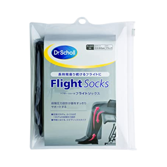 英国の圧力値標準規格を元に開発された段階圧力ソックス。長時間座り続けるフライトでも安心!